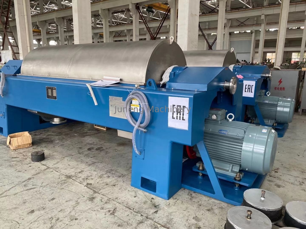 مبدأ الانفصال في جهاز الطرد المركزي: الدخول المعلوق في الطبل من خلال أنبوب التغذية ومخرج دوامة. تحت القوة الطائرة المركزية التي تولد من دوران عالية السرعة،يتم ترسب الجسيمات الصلبة ذات الجاذبية النوعية الكبيرة على الجدار الداخلي للطبلالشفرات المدارية التي تتحرك بالنسبة للطبل تقوم باستمرار بتمشيط الجسيمات الصلبة المتراكمة على الجدار الداخلي للطبل ودفعها خارج منفذ تفريغ الحطام.يتدفق السائل الواضح المنفصل من الطبل من خلال فتح لوحة ضبط طبقة السائليتم تحقيق الحركة النسبية بين المسمار والطبل، أي سرعة التفاضل، من خلال التفاضل، ويتم التحكم في حجمها من قبل المحرك المساعد